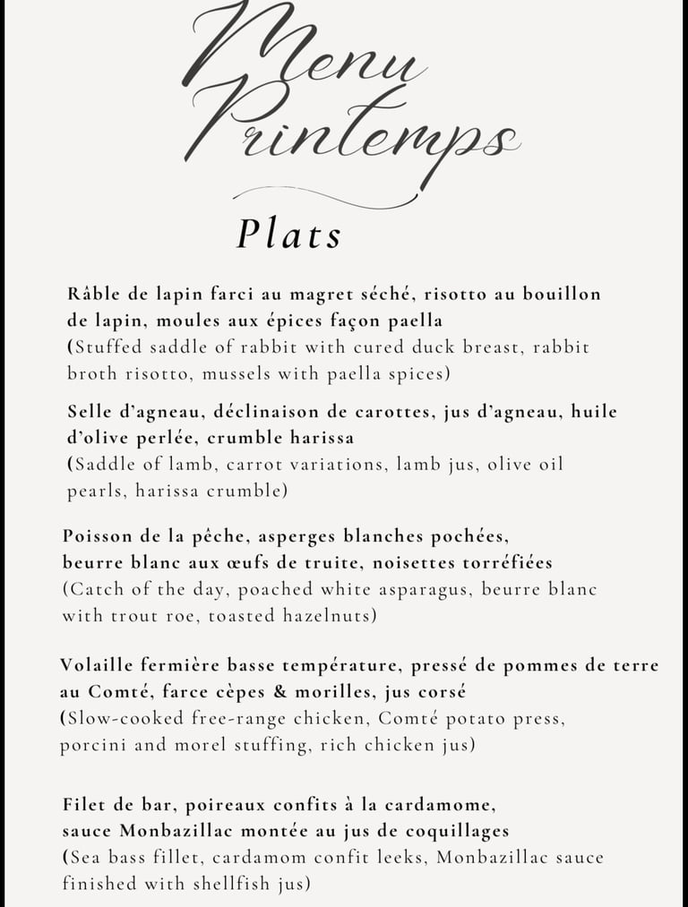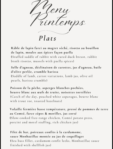 The dishes above are simply suggestions — a glimpse of the cuisine I enjoy preparing for you.