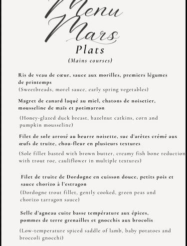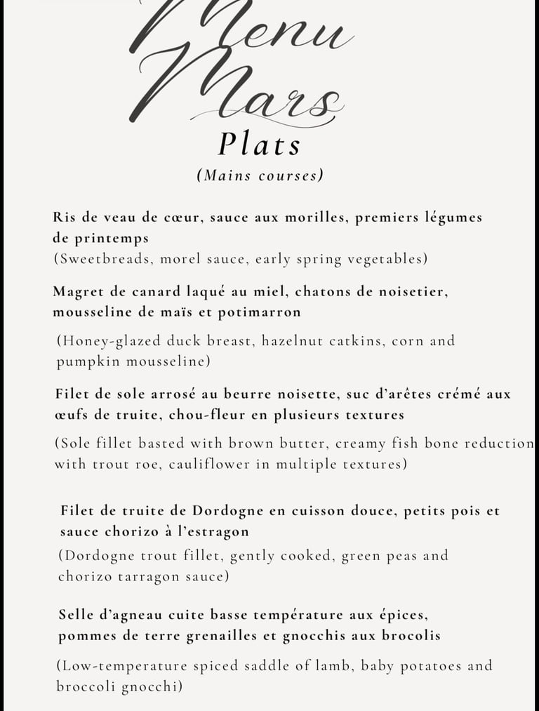 The dishes above are simply suggestions — a glimpse of the cuisine I enjoy preparing for you.